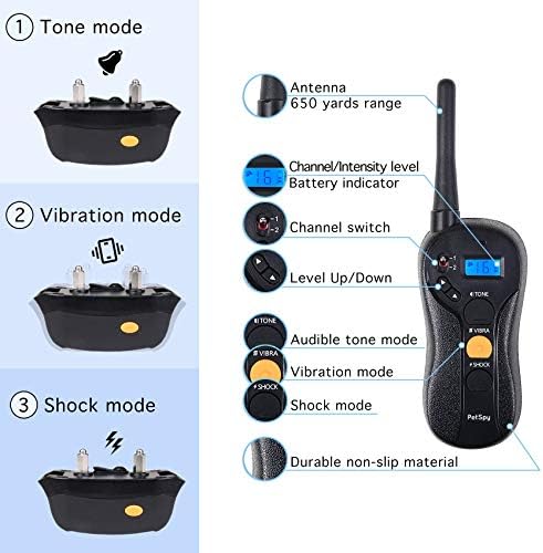 Price PetSpy P620 Dog Training Shock Collar for Dogs with Vibration, Electric Shock, Beep; Rechargeable and Waterproof Remote Trainer E-Collar - 10-140 lbs